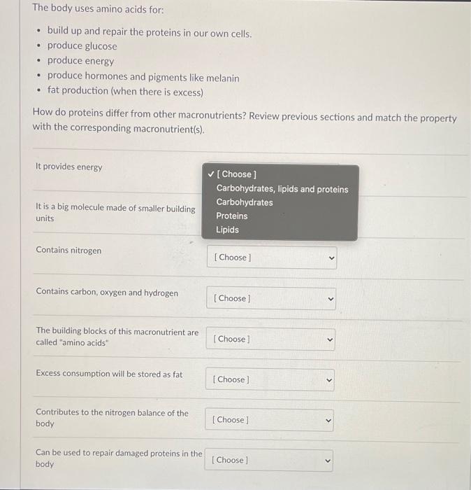 20 amino acids are arranged in unique order to create all of the bodys proteins. There are nine amino-acid proteins the building blocks of human tissue that we can only. 11 rows Proteins contain the facets carbon hydrogen and also oxygen simply as carbohydrates and lipids.